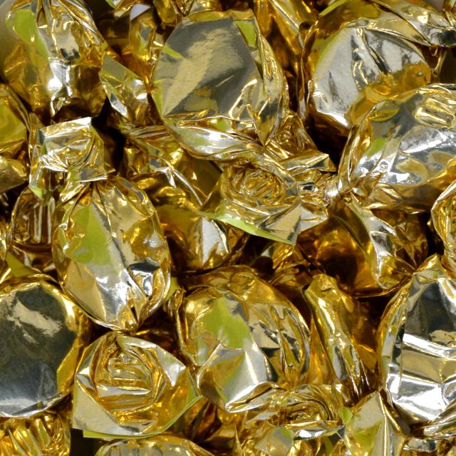 - Engelsk flødekaramel med overtræk af mørk chokolade - indpakket i guldfolie. Ca. 7,5 gr. pr. stk