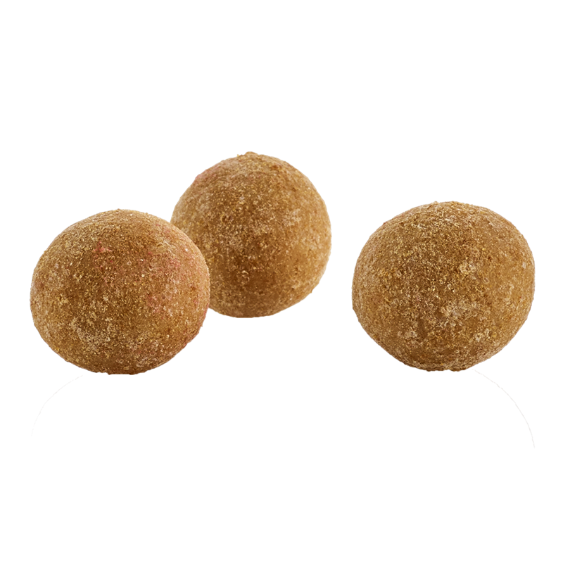 - Lakridskugle, hvor kernen er lakrids overtrukket med lys chokolade og rullet i mild lakridspulver. Hver kugle vejer 6,5 gram.