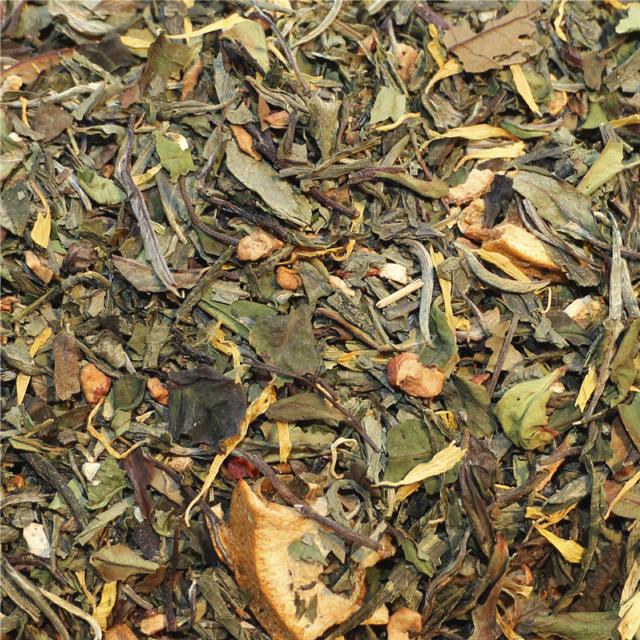 - Grøn og hvid teblanding med æble og appelsin, et frisk mix som giver en dejlig tekop.