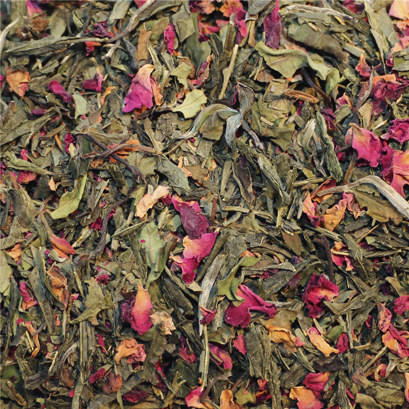 Grøn te(72%), hvid te(22%), rosenblade, frysetørrede kvædestykker(3%), aroma