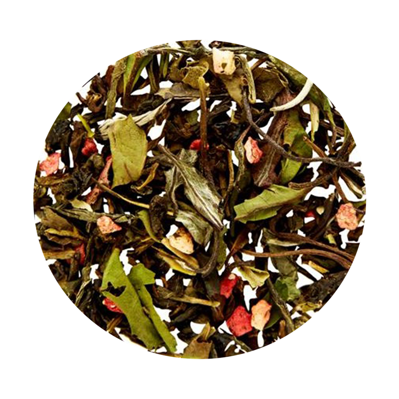 Denne te er sammensat af hvid og grøn te, fra nøje udvalgte plantager på Sri Lanka. Teen har subtile toner af jordbær og jasmin.