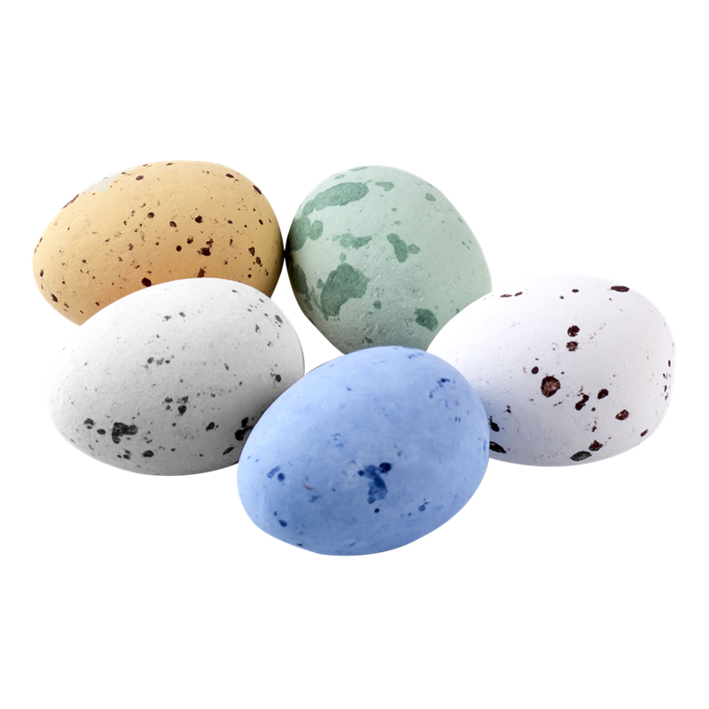 - Små fine påske fugleæg med skønt knæk i glasuren og en delikat kerne af nougat. Perfekt i bulk, så der er muligheder for at pakke i egne fine poser til værtindegave, til påskekurven eller blot til den søde tand til påskefrokosten.