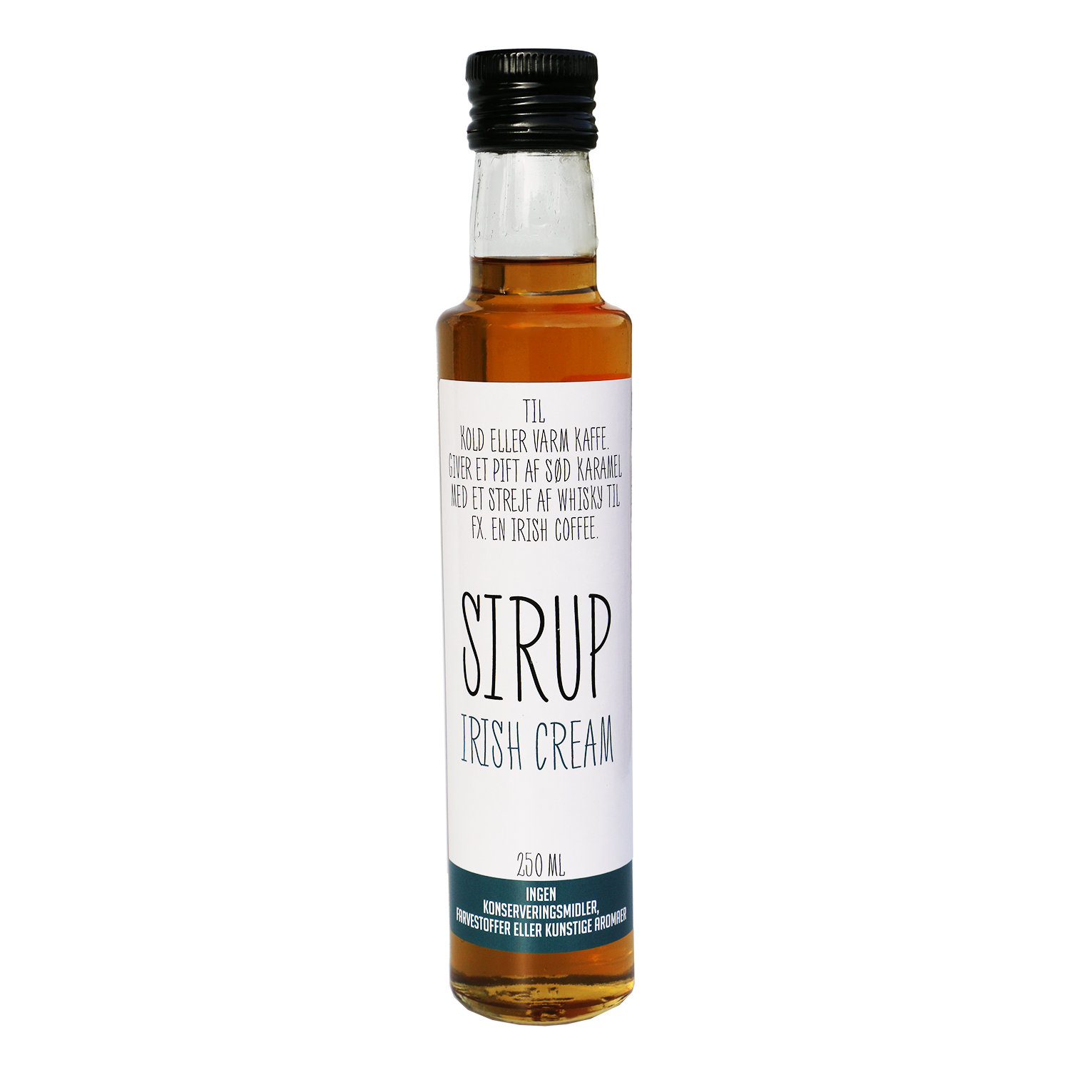 - Denne sirup irish cream giver kaffen et fint pift af sød karamel med et strejf af whisky og giver mange muligheder for at prøve mange spændende kaffedrikke af derhjemme. Duften af siruppen leder tankerne hen på likøren med samme navn. Ligesom vi ikke går på kompromis med smag og konsistens, har vi ingen E-numre eller kunstig farve i siruppen. Siruppen adskiller sig derfor fra mange andre sirupper på markedet. Der tilsættes glukosesirup til sukkeret under produktionen, da glukosesirup sikrer den lækre sirup fra at krystallisere. Sirup er som prikken over i´et og er det søde touch der fremhæver alle de andre gode smage i det du bruger den til. I flaskehalsen sidder et drypstop, således du undgår sirup på flaskens yderside og derved ikke kommer i kontakt med hænderne.