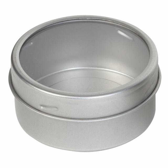 - Rund sølvdåse med vindue Ø 65 mm. Perfekt til duftprøver af te. Magnetisk så den kan sidde på siden af de store tedåser.