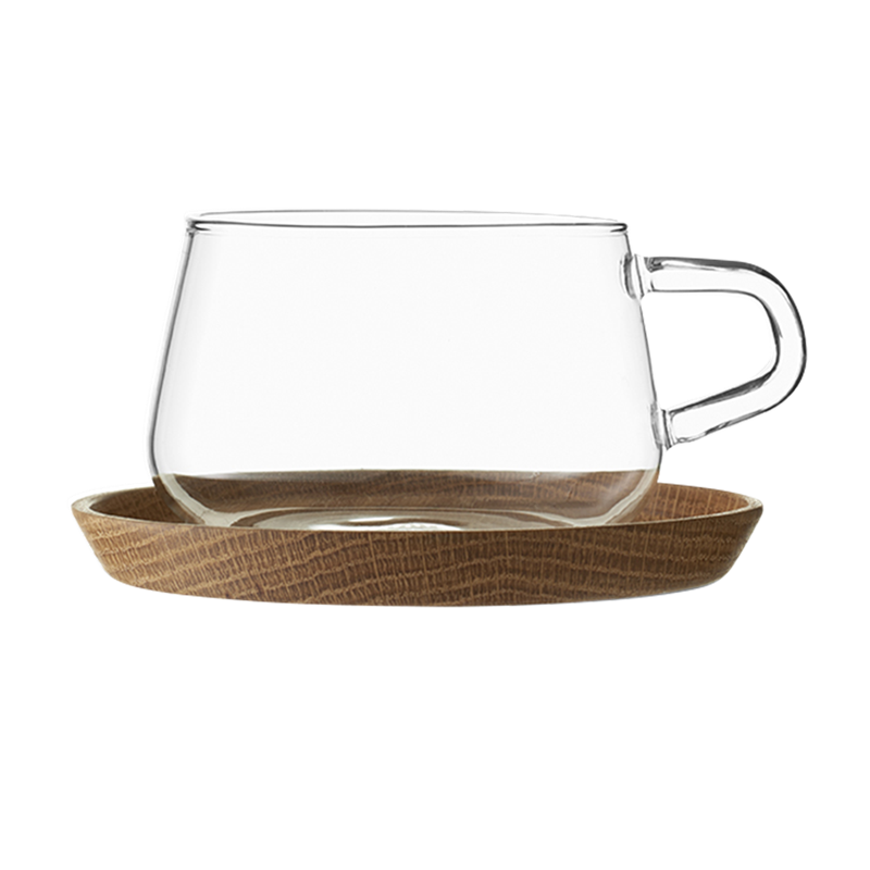 - Æstetisk og gennemført flot glas kop i en lækker facon og bambus underkop.