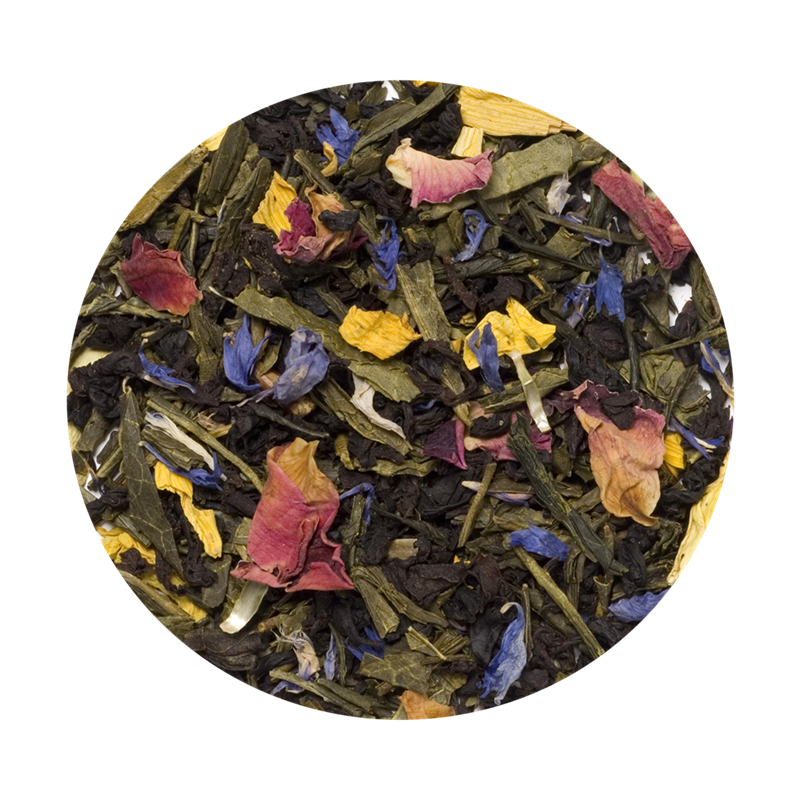 Grøn Ceylon te(72,6%), sort Ceylon te*(20%), naturlig grapefrugtaroma, kornblomst* og/eller katostblomst*, morgenfrueblomst*, rosenblade*, naturlig mango aroma og naturlig passionsfrugt aroma *=økologisk