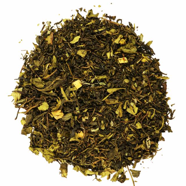 Grøn Ceylon te*(68%), hvid Ceylon te*(20%), skåret citron verbena*, naturlig citron, brombær, mango og passionsfrugt aroma, chili*, mangostykker*(0,8%) og ferskenstykker*(0,8%) *=økologisk