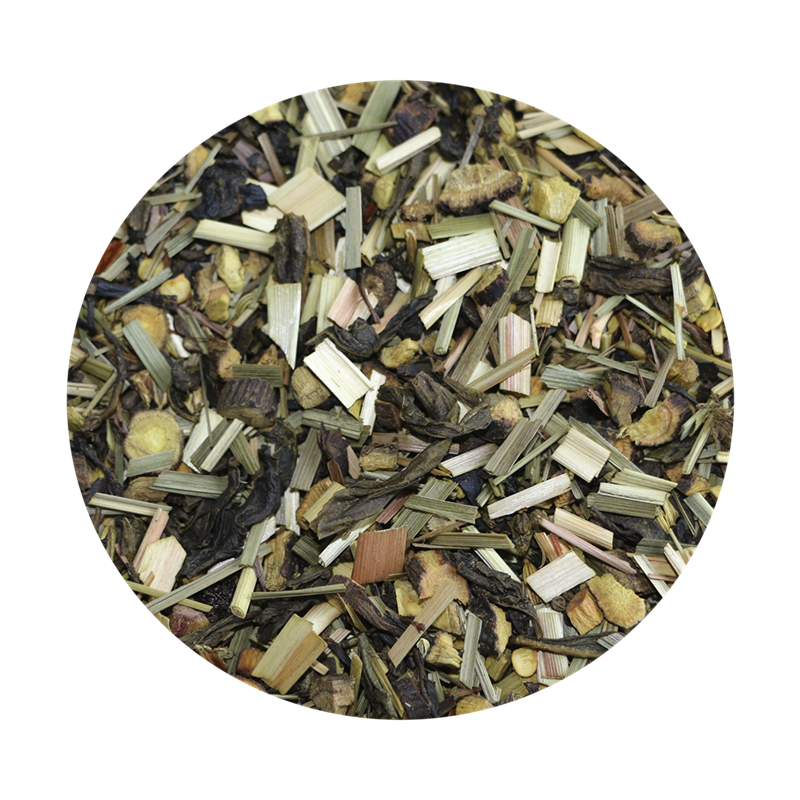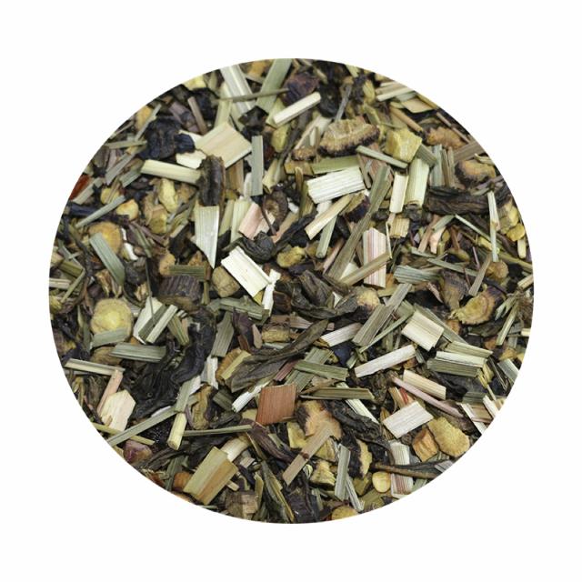 Lakridsrod, skåret*, grøn te*(22%), citrongræs*, hel grøn anis*, hel fennikel*, goji bær*, chili*, naturlig citron aroma, naturlig brombær aroma, naturlig grapefrugt aroma og naturlig anis aroma *=økologisk.