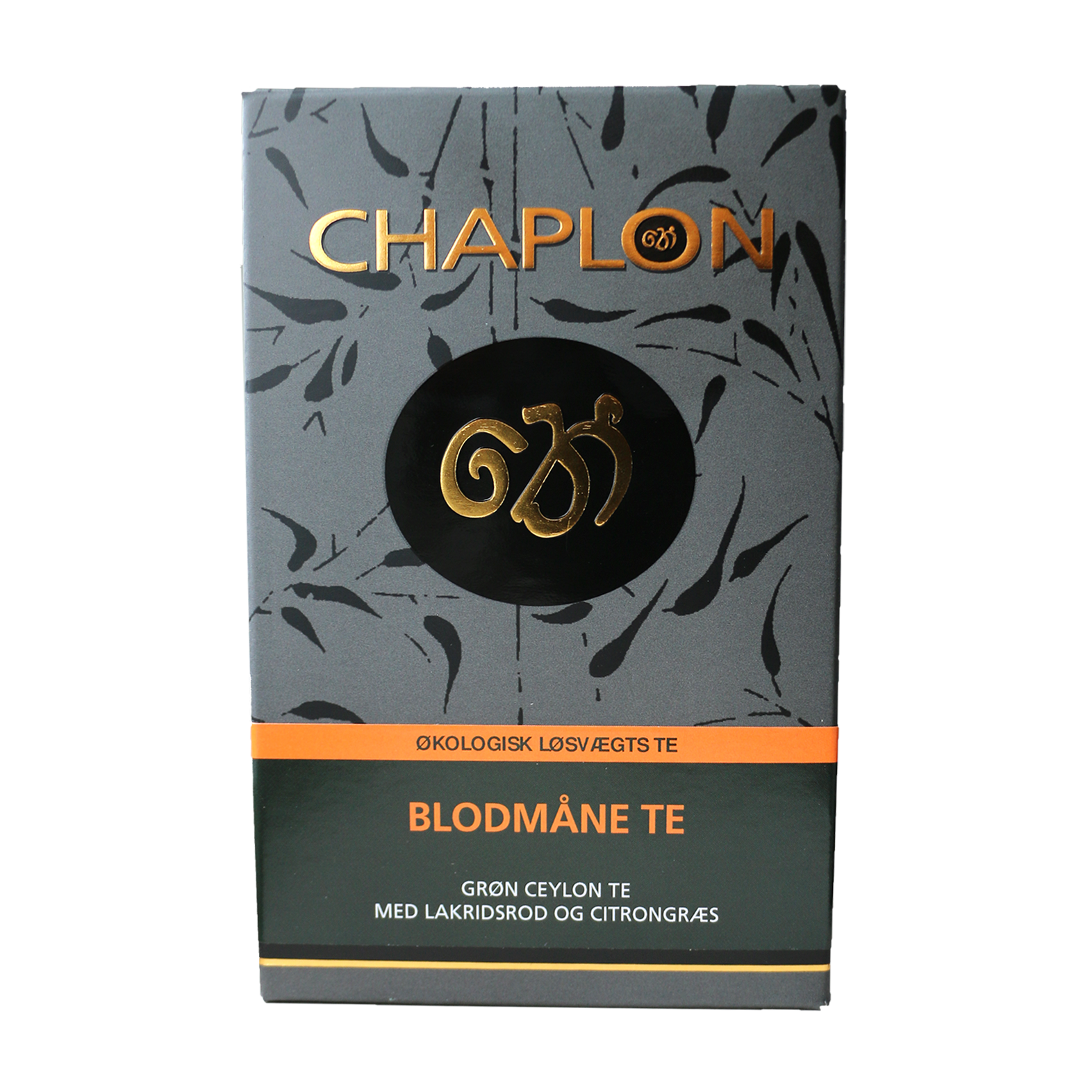 - Chaplon Blodmåne te er en søsterte til Chaplon Fuldmåne te. Teen er sød, frisk og med en vidunderlig smag af lakrids og med en behagelig varme fra chili.