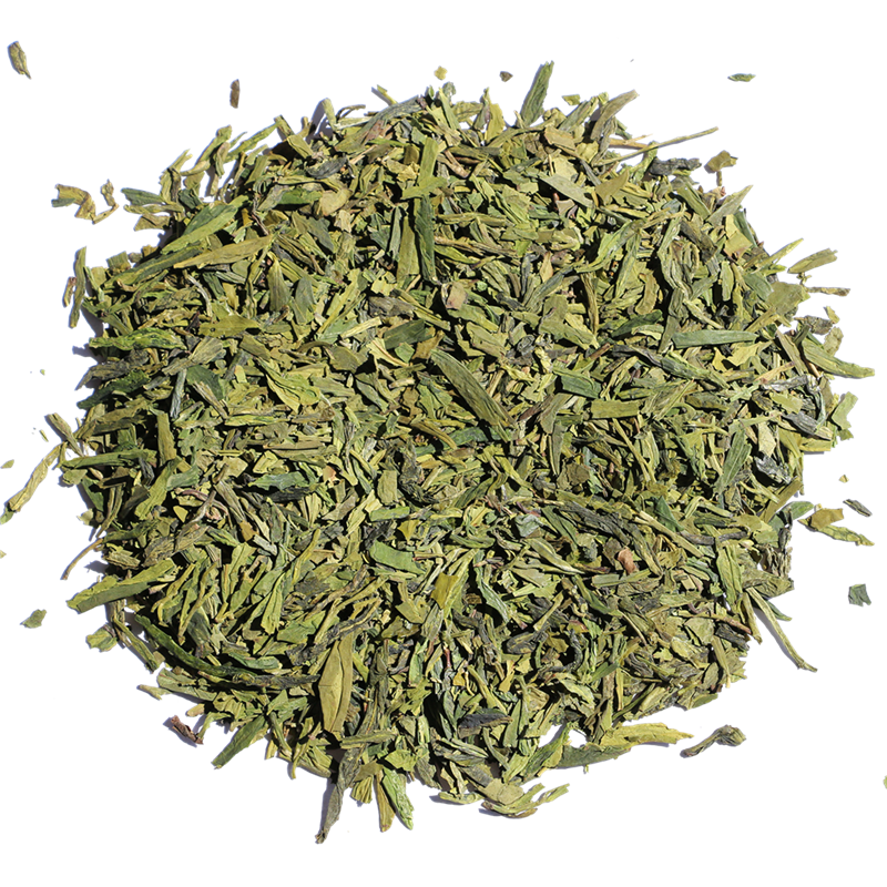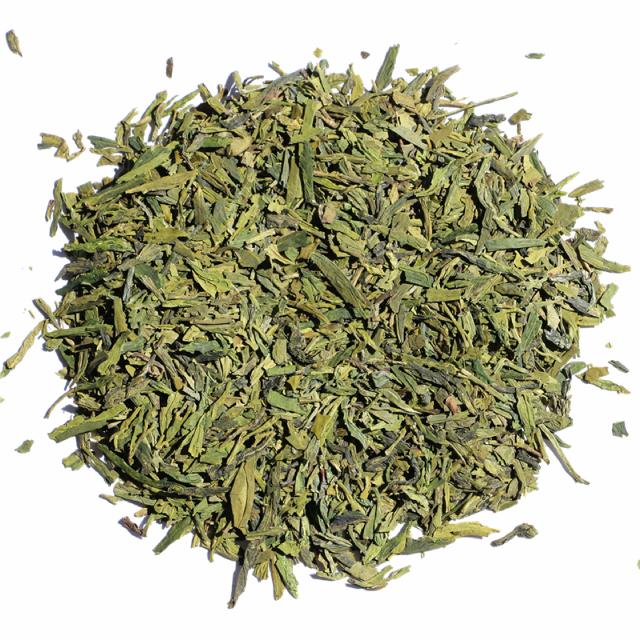 - Lung Ching te kommer fra Hangzhou regionerne i Zhejiang provinsen, som anses for at være det originale og bedste te distrikt i Kina. Lung Ching betyder dragekilde. Som navnet antyder, løber der en kilde gennem området og ifølge legenden huserede der en drage i området. Munkene bad til dragen om at redde bønderne fra tørken, og med ét samlede sig regnfulde skyer, og kilden viste sig. Teen er kendt for sin fyldige, runde og næsten nøddeagtige smag. Teen er tørret og håndformet i en stor jernpande. Det kræver stor håndværksmæssig kunne at presse tebladene mod pandens sider gentagne gange for at opnå det karakteristiske flade udseende. Teen har en frisk aroma og en smuk gulgrøn farve i koppen. Pas på ikke at overdosere ved tilberedning, det vil give kedelig oplevelse.