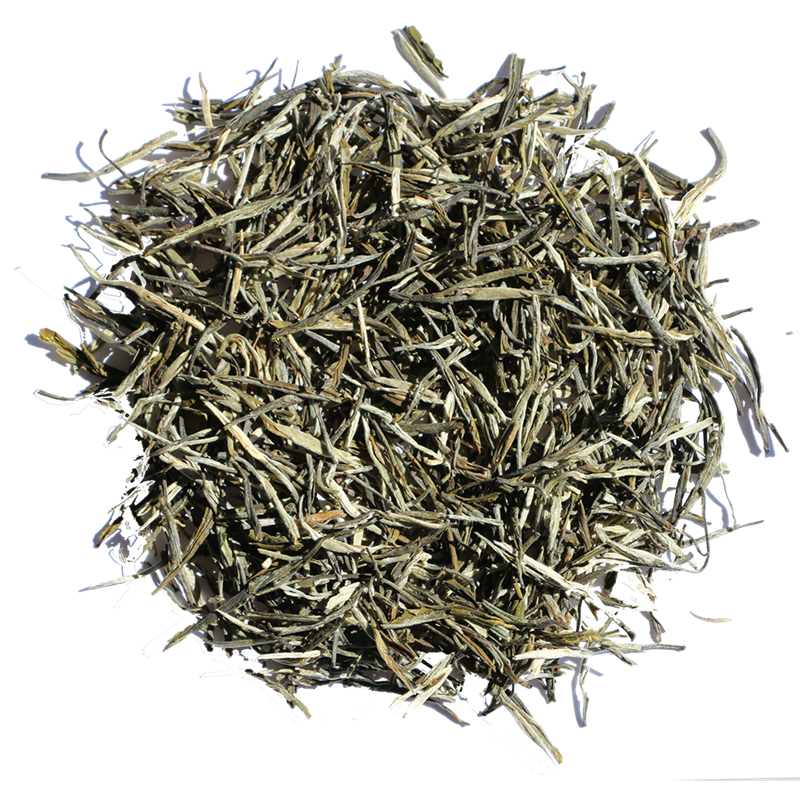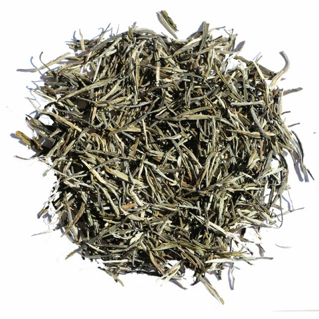 - Økologisk shimmering silk grøn te fra Yunnan i Kina består af sølv knopper og silkebløde spidsblade. Shimmering silk grøn te er langbladede topskud, hvor de spidse teblade er lagt tæt ind til. Under produktionen kræver det en helt særlig proces at lave denne te, uden at beskadige tebladene. Topskud og blade plukkes i foråret, inden topskuddet endnu har foldet sig ud, og hvor de to blade endnu ikke er helt åbne. De meget lange sølv knopper viser, at det er en te af høj kvalitet. Høstvinduet varer kun ganske få dage, for at opretholde korrekt farve, størrelse og smag på bladene. Te buskene gror mellem 1500-1800 meters højde, hvor gennemsnitstemperaturen ligger på ca. 15°C og et årligt regnfald på ca. 1600 mm. Teens farve er grøn og aromaen kraftig og robust. Shimmering Silk smager frisk og sender tankerne hen på nyslået græs om foråret.