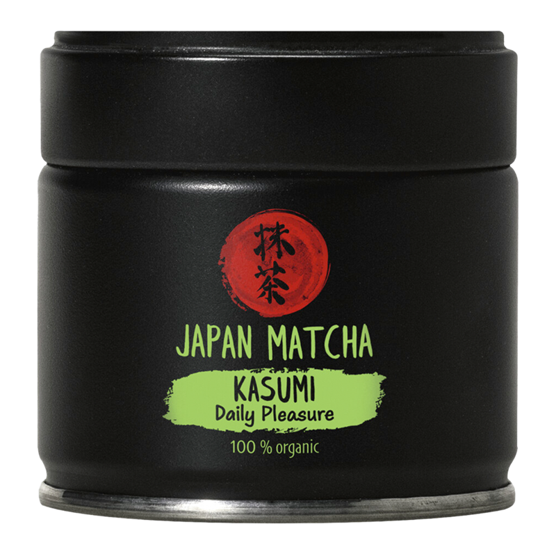 - Matcha Te Kasumi ØKO er fint malet grøn te i højeste kvalitet og er den te man bruger ved den japanske te-cermonier. Matcha består af de fineste blade fra årets første høst. Buskene har stået overdækket med bambusmåtter, således at bladene ikke bliver udsat for direkte sollys i 3-4 uger. Denne proces medvirker til, at bladene får et mere koncentreret klorofyl indhold, der giver denne te den flotteste grønne farve, men bladene udvikler også en finere aroma. Inden tebladene tørres fjernes bladets stængler og vener så bladene kan males helt fint. Efter endt tørring bliver tebladen emalet i en stenmølle til et meget fint pulver. Dosering: 1g pr 80 ml vand. vandtemp.:80°C Teen piskes op i skålen med et matcha ris. Teen piskes i form af et" M" og ikke rundt i skålen, derved dannes det skum som viser at tebladene er opløst og kan nydes med stor glæde.
