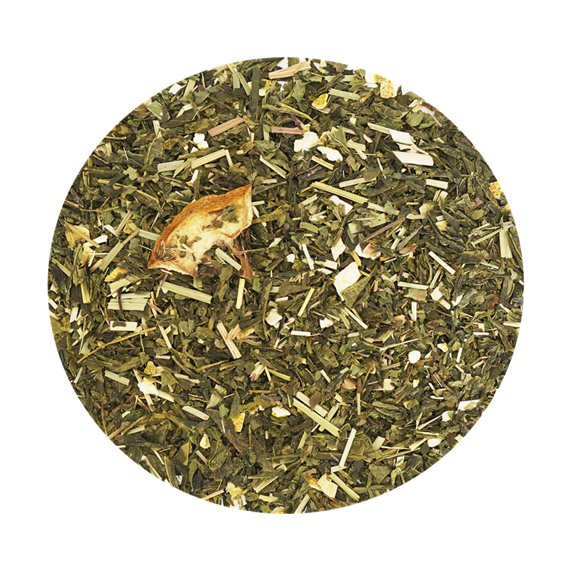 Grøn te(65%), citrongræs(10%), pebermynte(10%), citron skaller(9%), citronskiver(6%), aroma