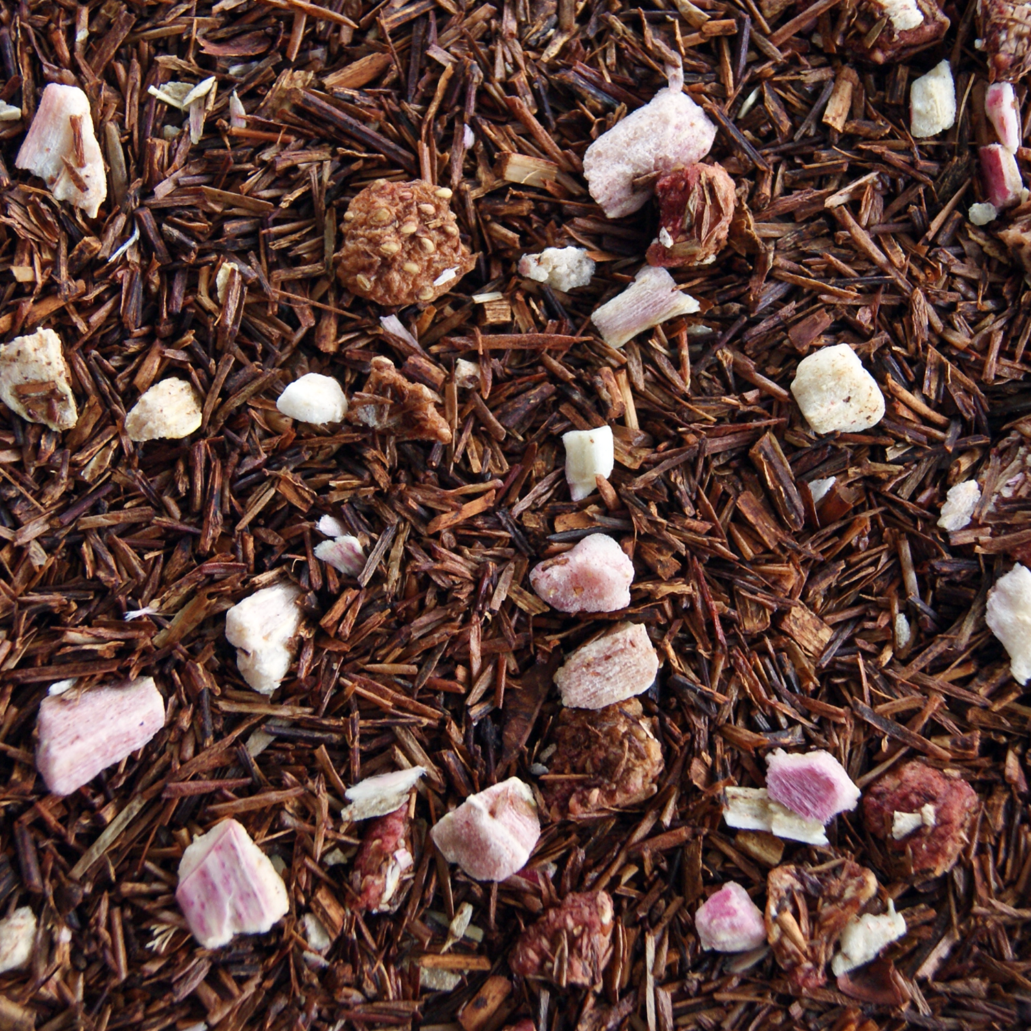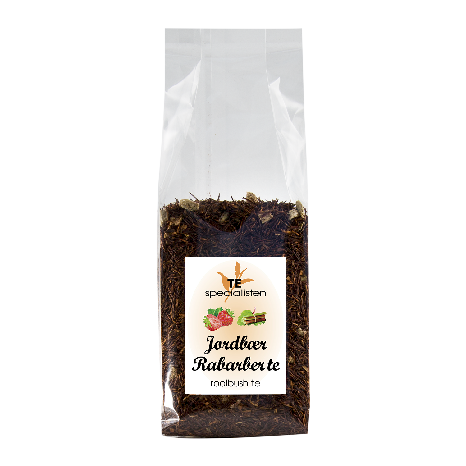 Sydafrikansk Rooibush te, frysetørrede jordbærstykker (1%), frysetørrede rabarberstykker (1%) og aroma.